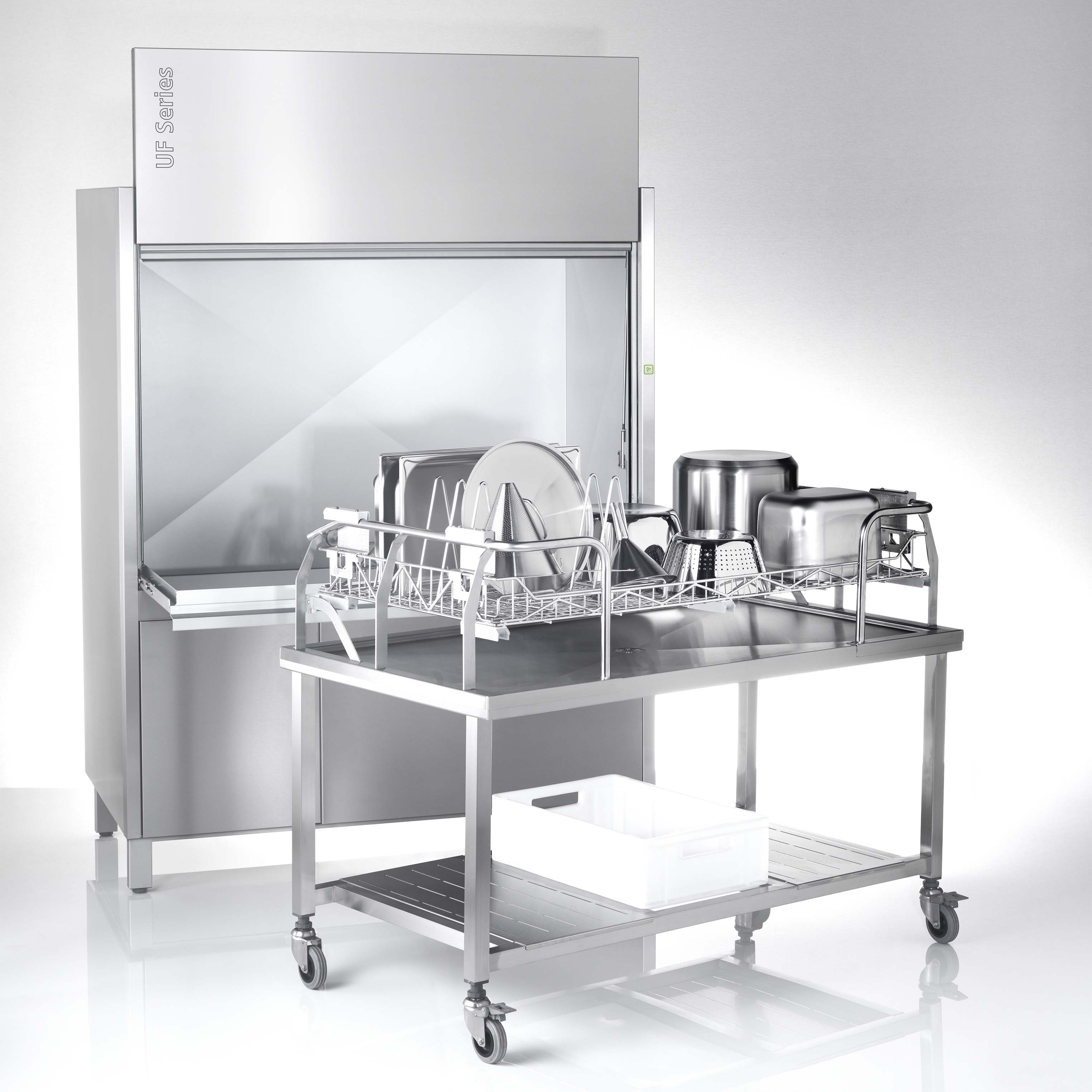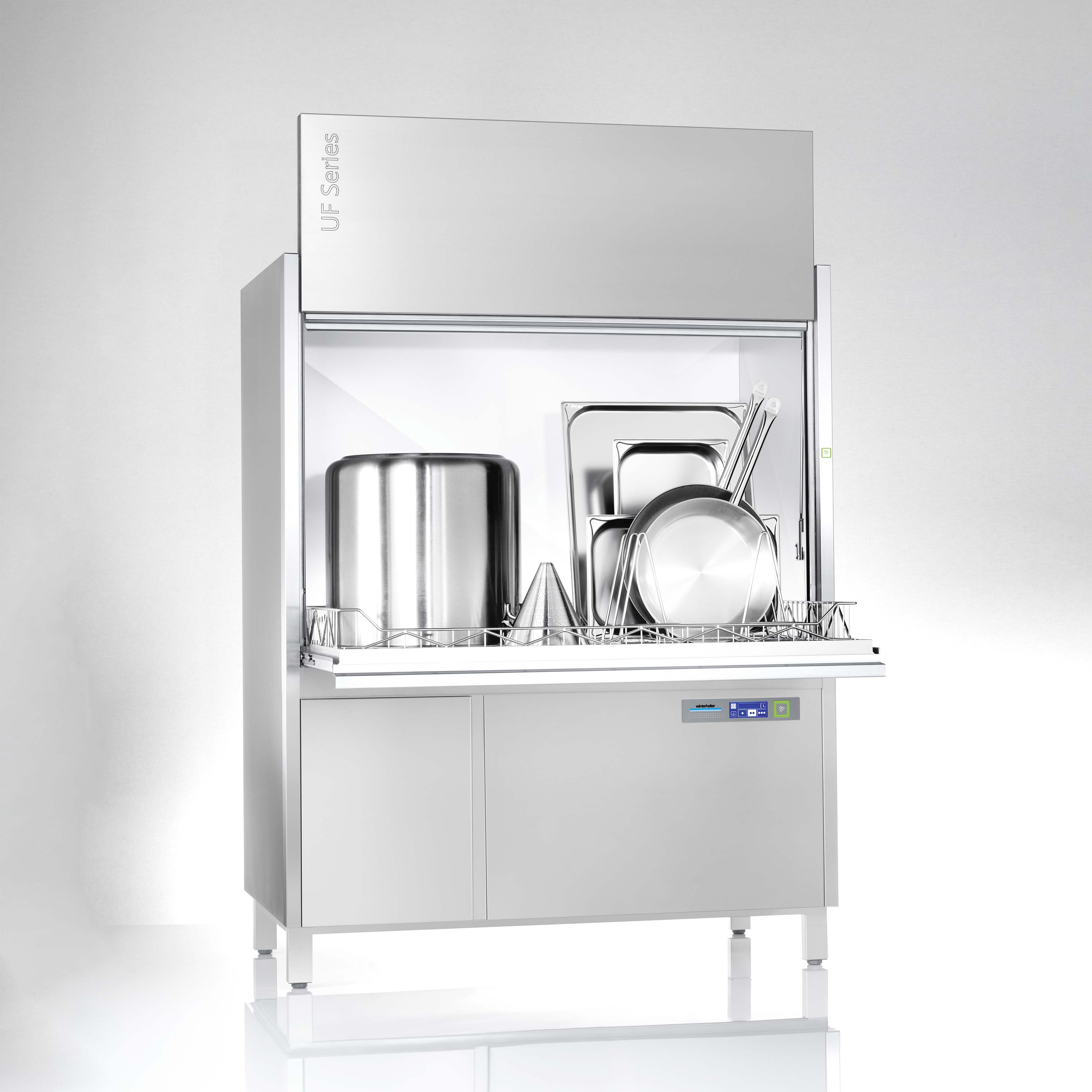 Die UF in der Grösse L. Die Gerätespülmaschine mit erweiterter Einfahrhöhe: auch für das Spülen grossformatiger Backbleche. Speziell für Bäcker.