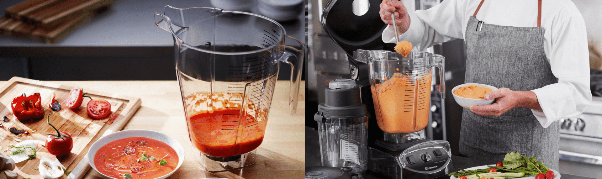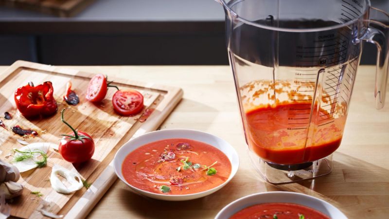 Intelligentes Produktionsdesign gepaart mit leistungsstarkem Motor mit 4,2 PS Spitzenleistung mixt alles von zarten Tomaten bis hin zu kompakten Fleischsorten.